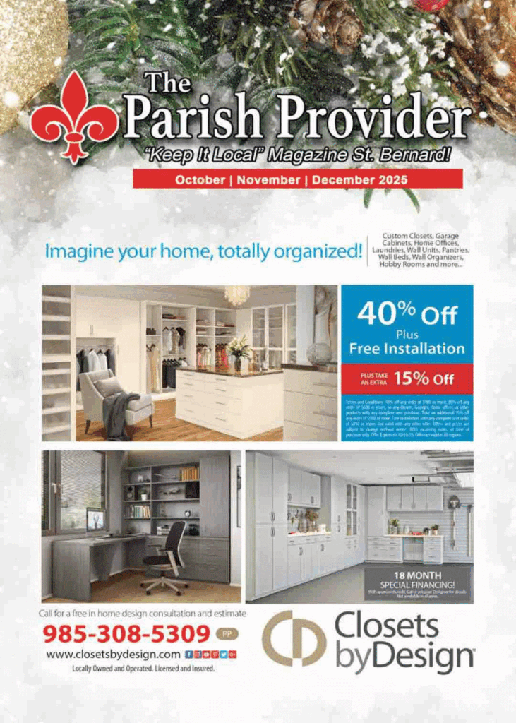 The Parish Provider magazine is a direct mailed magazine. 20,000 magazines are mailed into homes in Arabi, Chalmette, Meraux, Violet, Poydras & Lower St. Bernard 4 times a year. Advertise "LOCAL"!!